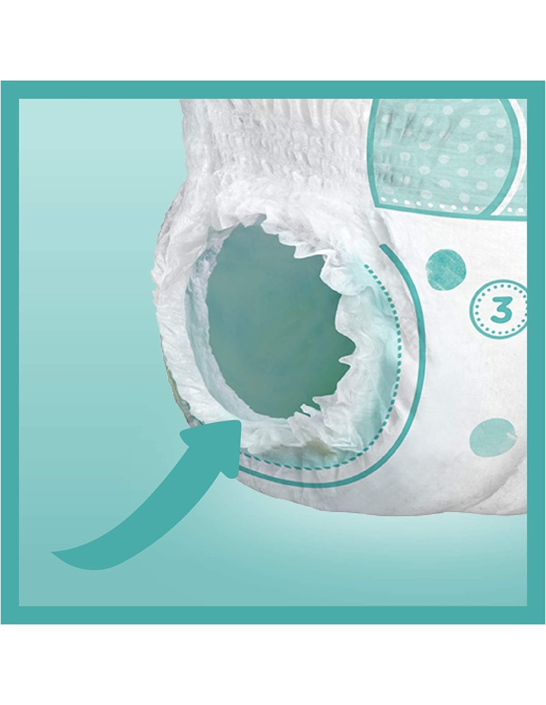 2. Triple Système d'Absorption: Capture instantanément l'humidité, laissant la peau de bébé au sec et protégée pendant jusqu'à 12 heures.
