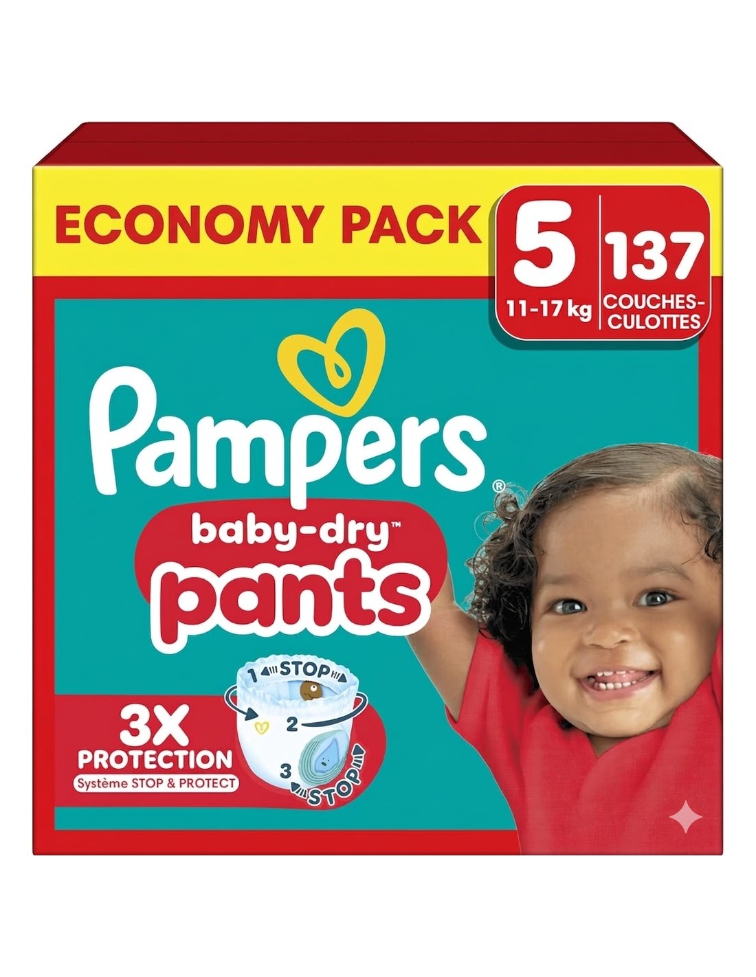 PAMPERS PANTS TAILLE 5 BABY-DRY 137 COUCHES CULOTTES ECONOMY PACK 12-17 KG